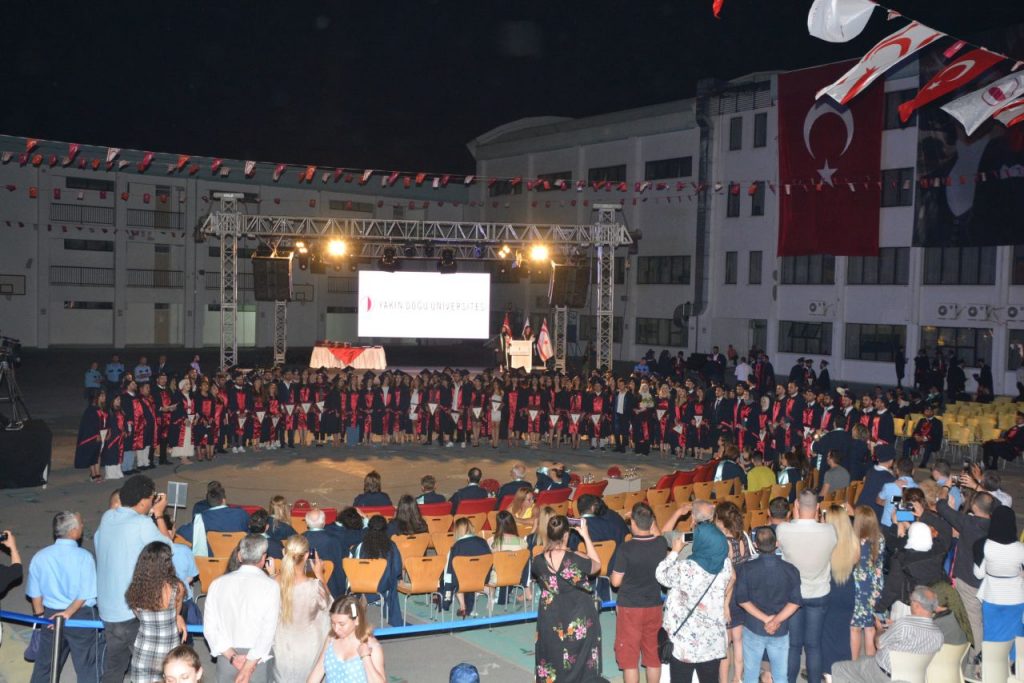 Tören, Gazi Mustafa Kemal Atatürk, Kıbrıs Türklerinin lideri Dr. Fazıl Küçük, Kurucu Cumhurbaşkanı Rauf R. Denktaş ve Tüm şehitlerin anısına bir dakikalık saygı duruşu ve İstiklal Marşı’nın okunmasıyla başladı. Törende, Rektör Yardımcısı Doç. Dr. Mustafa Kurt, Mimarlık Fakültesi Dekanı Prof. Dr. Zeynep Onur, uluslararası mezun öğrenciler adına Mustafa Gaber Ahmed ile tüm mezun öğrenciler adına Kübra Kendir konuşmalarını gerçekleştirdi. Konuşmaların ardından sahnelenen Yakın Doğu Üniversitesi Dans Okulu Öğrencilerinin Latin Dans Gösterisi büyük beğeni topladı. İç Mimarlık bölümü öğrencilerinden Berkay Pekmezci’nin dans gösterisi de törene renk kattı