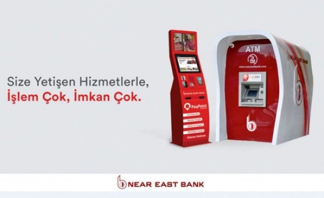 Near East Bank’ın işlem hacmi açısından en yoğun alternatif kanalları olan ATM ve Kiosk’larını her geçen gün yeni lokasyonlarda arttırmayı hedefliyor. Near East Bank ayrıca adanın her bölgesine hizmet götürerek; müşterilerine Girne, Alsancak, Lapta, Dikmen, İskele, Akdoğan, Mehmetçik, Yeni Erenköy ve Güzelyurt Belediyelerine bağlı 58 lokasyonda bulunan 72 adet Kiosk cihazından; KIB-TEK, Lifecell, ön ödemeli su sayacı kontör yüklemesi, Vodafone ve Turkcell fatura ödemeleri, Vodafone ve Turkcell kontör yükleme, Vodafone ve Turkcell paket yükleme, Belediye temizlik ücreti, Belediye emlak vergisi, Belediye sağlık ücreti, Belediye trafik cezası ve daha birçok Belediye fatura ödemeleri için kolaylık sağlıyor.