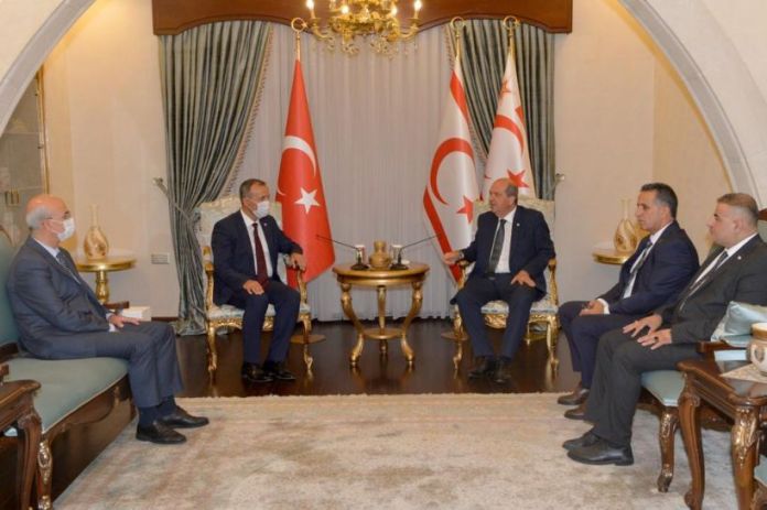 Cumhurbaşkanı Ersin Tatar, TC Atatürk Kültür, Dil ve Tarih Yüksek Kurumu Başkanı Prof. Dr. Muhammet Hekimoğlu, Türk Dil Kurumu Başkanı Prof. Dr. Gürer Gülsevin ile Genel Orta Öğretim Dairesi Müdürü Cengiz Topel Uzun’u kabul ederek görüştü.