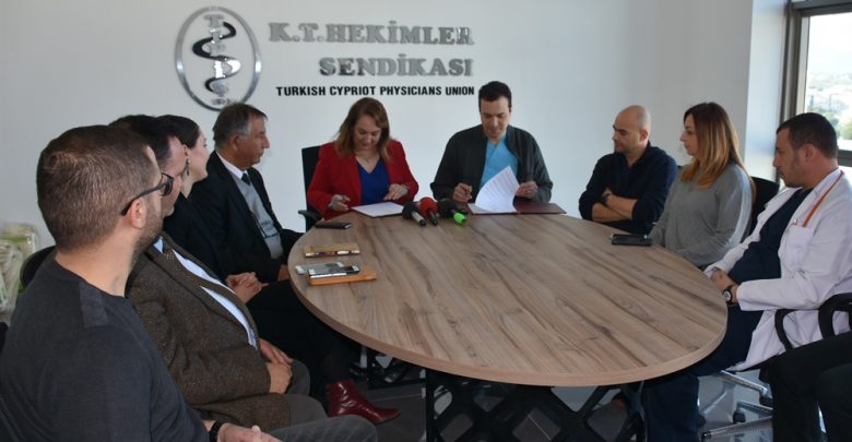 Ziyarette TIP-İŞ’in, Lefkoşa Dr. Burhan Nalbantoğlu Devlet Hastanesi Onkoloji Merkezi’nin en üst katını lokal olarak kullanmasına yönelik protokol de Sağlık Bakanı Besim ve TIP-İŞ Başkanı Ahmet Varış tarafından imzalandı.
