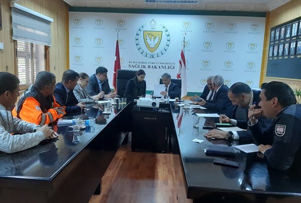 Sağlık Bakanlığı’ndan verilen bilgiye göre, Sağlık Bakanlığı’nda gerçekleştirilen toplantıya İçişleri Bakanı Ayşegül Baybars, Belediyeler Birliği Başkanı Mahmut Özçınar, Merkez Kaymakamı Ahmet Aslan, Sivil Savunma Teşkilat başkan yardımcısı ve polis muhaceret yetkilileri katıldı.