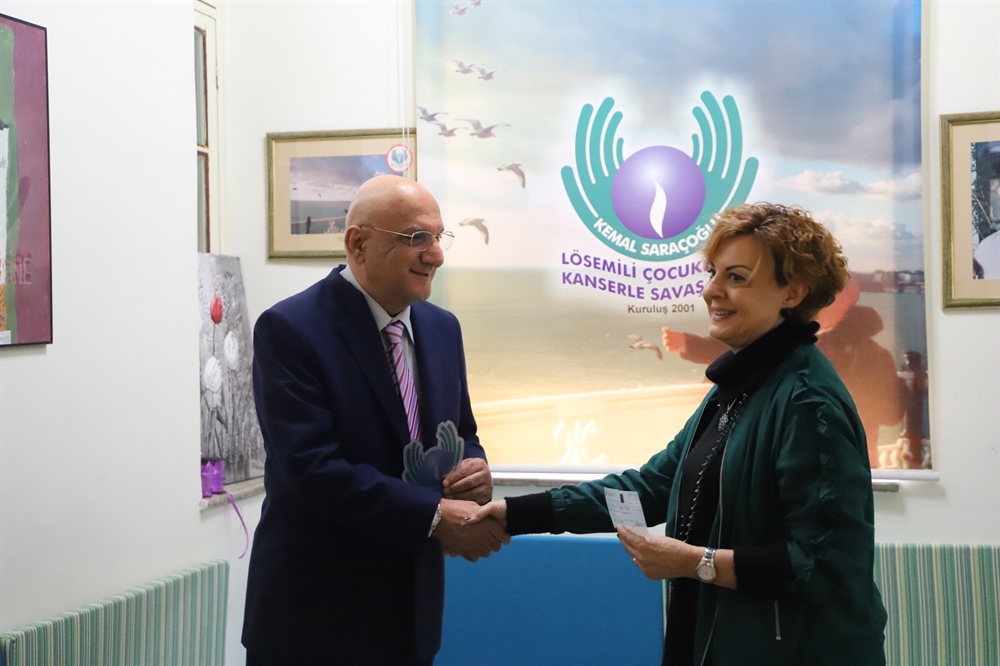 Sanver, 20 bin TL tutarındaki bağış çekini Kemal Saraçoğlu Lösemili Çocuklar ve Kanserle Savaş Vakfı Başkanı Nevhiz Özer’e sundu. Özer de Sanver’e anı plaketi takdim etti.