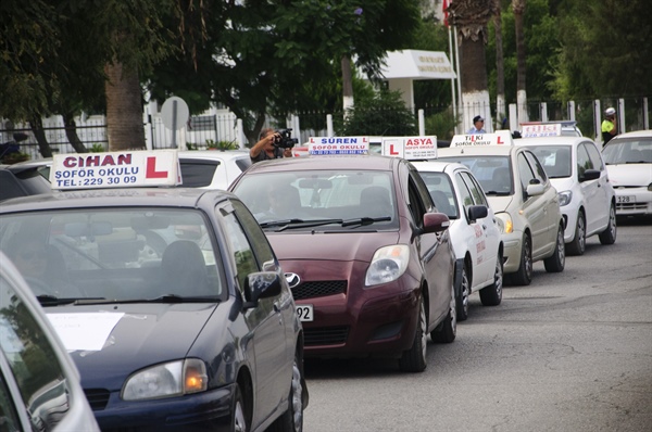 Lefkoşa’da eski Kıbrıs Türk Hava Yolları binasının olduğu yerdeki sınav yerinden başlayarak, araç konvoyuyla bakanlık önüne gelen şoför okulları temsilcileri, burada diyalog yollarını tıkadığı gerekçesiyle Bayındırlık ve Ulaştırma Bakanı Tolga Atakan’ı protesto ederek, istifaya davet etti.
