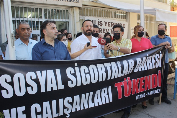 Sosyal Sigortalar Dairesi’nde yaptıkları 4 saatlik uyarı greviyle ilgili açıklamada bulunan KTAMS ve KAMUSEN, dairedeki sorunlar nedeniyle vatandaşların hizmet almakta, çalışanların da hizmet vermekte zorlandığını belirtti.
