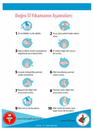 -El temizliğine dikkat edilmelidir. Eller en az 20 saniye boyunca sabun ve suyla yıkanmalı, sabun ve suyun olmadığı durumlarda alkol bazlı el antiseptiği kullanılmalıdır. Antiseptik veya anti bakteriyel içeren sabun kullanmaya gerek yoktur, normal sabun yeterlidir.