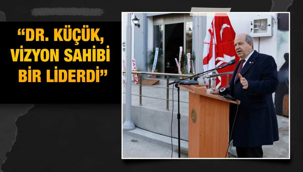 Varoluş mücadelesi lideri Dr. Fazıl Küçük’ün 38. ölüm yıl dönümünde anıldığını, şimdi de bu güzel açılışta kendisini yad ettiğini söyleyen Cumhurbaşkanı Tatar, Dr. Küçük’ün tıp tahsilinden sonra ülkesine geri döndüğünde her türlü tehlikeye karşı kendini siper edip, her türlü baskıya rağmen ada sathında bütün cemaati örgütleyerek bir liderlik oluşturduğunu ifade etti.