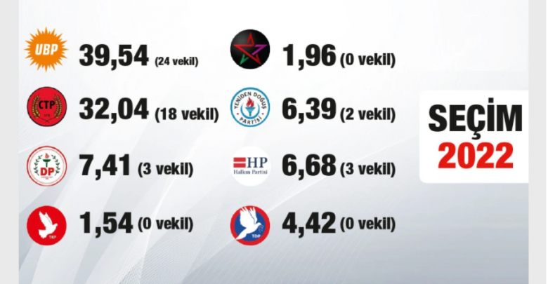 Yüksek Seçim Kurulu’nun gayriresmî sonuçları duyurduğu internet sitesindeki verilere göre Meclis’e 5 parti girmeye hak kazanıyor. UBP 24, CTP 18, DP 3, HP 3 ve YDP de 2 milletvekili çıkarıyor.