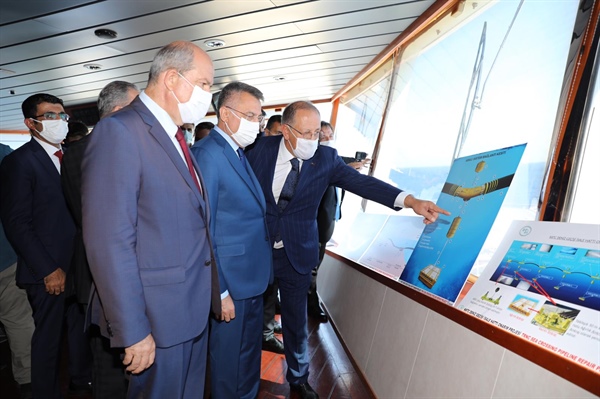 KKTC Başbakanı Tatar, Türkiye Cumhurbaşkanı Yardımcısı Fuat Oktay, Tarım ve Orman Bakanı Bekir Pakdemirli ile “KKTC Su Temin Projesi”nin onarım çalışmalarının yürütüldüğü, Mersin açıklarındaki gemide incelemelerde bulundu.