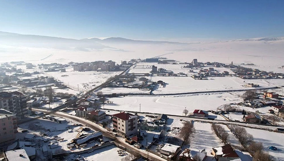 Kar ve dondurucu soğukların etkisinde kalan ilçe dronla görüntülendi.
