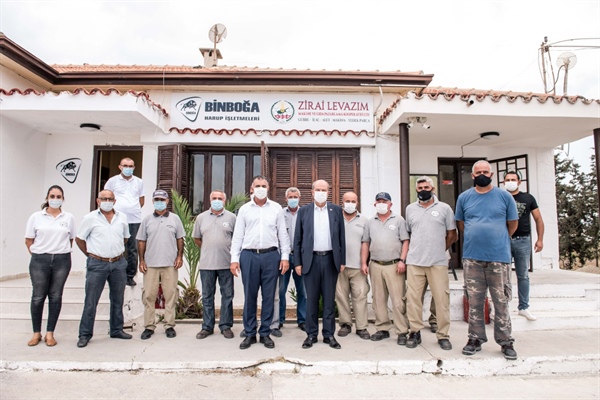 Tatar, Binboğa Harup İşletmelerini ziyaretinde tarımda üretimin önemine vurgu yaptı. Harupun Kıbrıs’ın simge ürünlerinden biri olduğuna işaret eden Tatar, İskele Bölgesi’nin ülke tarımı içinde ayrı bir potansiyele sahip olduğunu kaydetti.