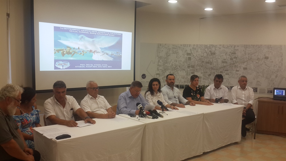 Bazı Kıbrıs Türk ve Kıbrıs Rum sendikalar, 1 Eylül Uluslararası Barış Günü vesilesiyle yaptığı ortak açıklamada, adada çözüm bulunması için birlik olma çağrısı yaptı.
