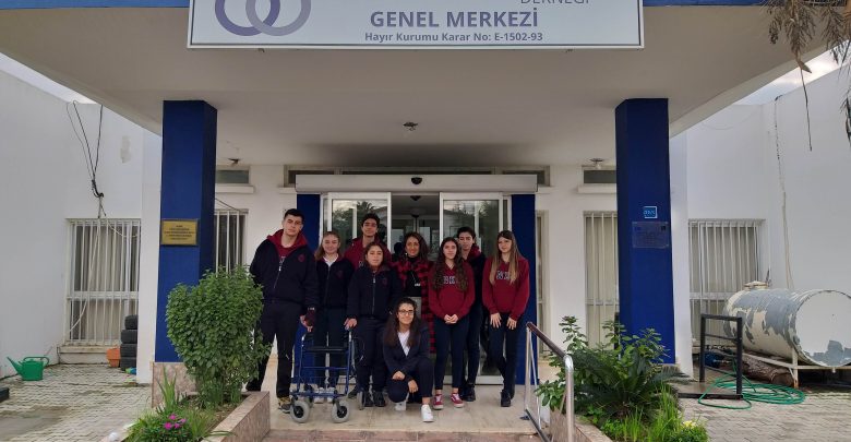 Lefkoşa’da bulunan dernek binasını ziyaret ederek bağışta bulunan öğrenciler dernek binasını gezerek derneğin işleyişi hakkında da bilgiler aldı. Dernek yetkilileri tarafından öğrencilere, derneğin misyonu gereği engelli vatandaşların toplum içerisinde eşit haklara sahip olarak var olabilmeleri adına mücadelelerinin sürdüğü anlatıldı. Engellilere yönelik yaptıkları çalışmaları anlatan yetkililer, ihtiyaç duyulan çalışmalar ile ilgili öğrencilerden fikirler aldı. Öğrenciler daha sonra dernek binasında faaliyet gösteren protez üretim birimindeki çalışmaları yerinde incelediler.
