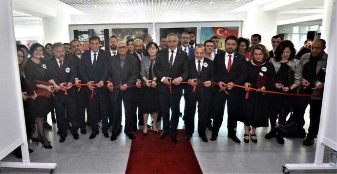 Yakın Doğu Üniversitesi ile Gazi Üniversitesi işbirliği içerisinde 21-25 Aralık Millî Mücadele ve Şehitler Haftası nedeniyle düzenlenen “Kıbrıs Türklerinin Varlık Mücadelesinin Sanatsal İzleri” konulu karma sergi İrfan Günsel Kongre Merkezi’nde Ekonomi ve Enerji Bakanı Hasan Taçoy tarafından açıldı.