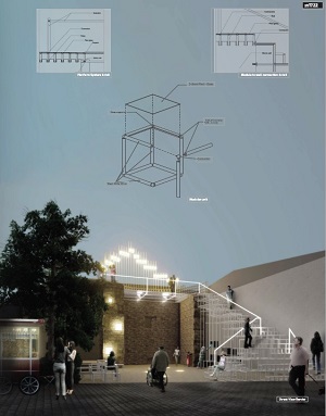 Mimarlık öğrencileri Mustafa Ahmet Gaber ve John Ifeanyi Ugwulebo, birincilik ödülüne layık görülen, “Transparent Ruins – Şeffaf Kalıntılar” adlı projelerinde tasarladıkları şeffaf merdivenle, Girne Kalesi’nin tarihi surlarını kapatmadan, günlük hayata katmayı amaçlayan bir tasarıma imza attılar.