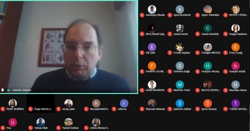 Doç. Dr. António Teixeira ise dijital dönüşüm yaşandığı pandemi döneminde öğrencileri çevrimiçi ortamda hem öğrenmeleri hem de interaktif katılım göstermelerinin gerekliliği üzerinde durdu. Doç. Dr. Teixeira, herkesin sosyal sorumluluk bilincinde olmasını ve değişimi temsil etmesini belirerek, bu dönemde yapılacak uzaktan eğitim çalışmalarının geleceğin şekillenmesinde önemli bulguları ortaya koyabileceğini ifade etti.