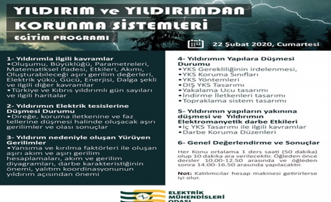 Kıbrıs Türk Mühendis Mimar Odaları Birliği (KTMMOB) Elektrik Mühendisleri Odası, cumartesi günü “Yıldırımdan Korunma Sistemleri” semineri düzenleyecek.